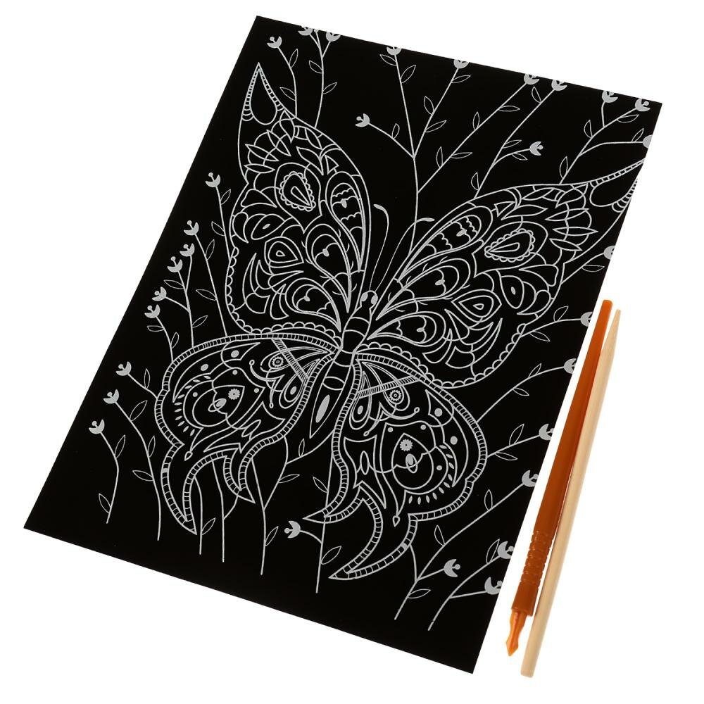 Купить Гравюра 18х24 см. бабочка, цветная MultiArt SCRATCHART-CLR-BUTTERFLY2