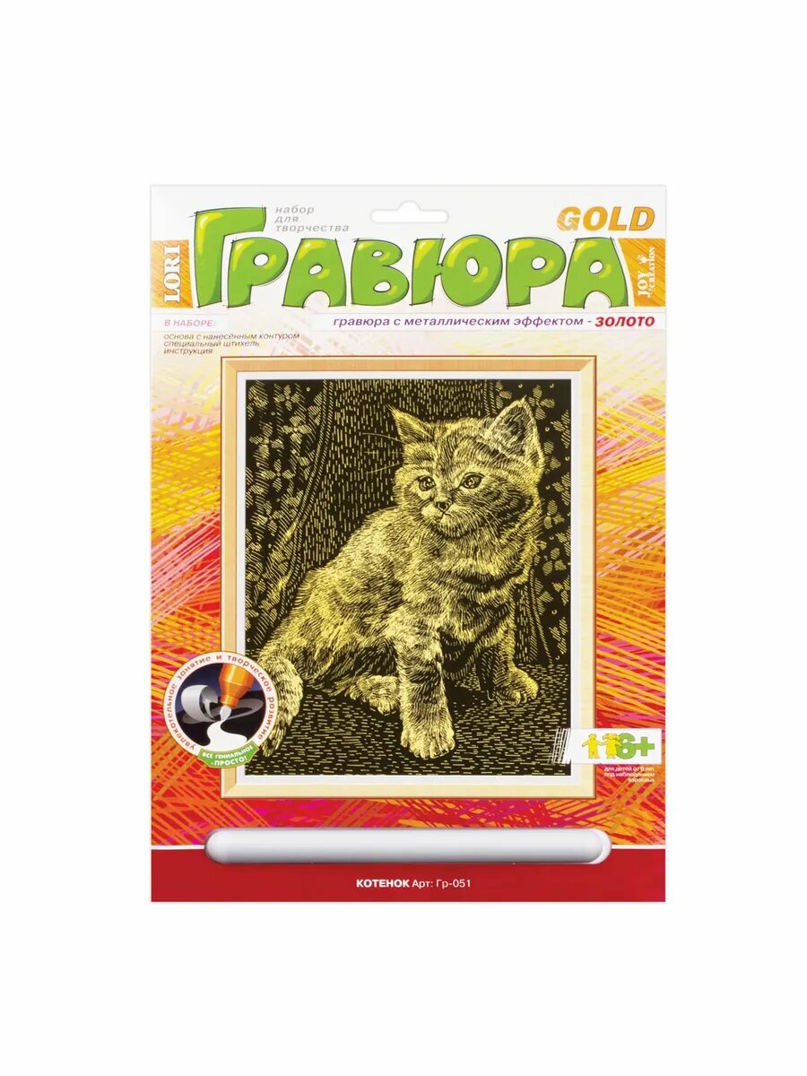 Гравюра с эффектом золота "котёнок", 18х24 см, основа, - 8шт интересное: