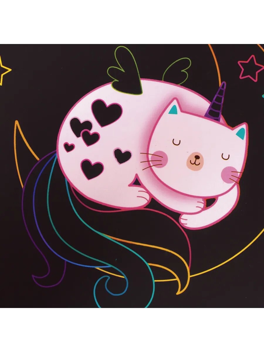 Купить Гравюра магическая "единорог и котенок", а5, 2 основы - 4шт