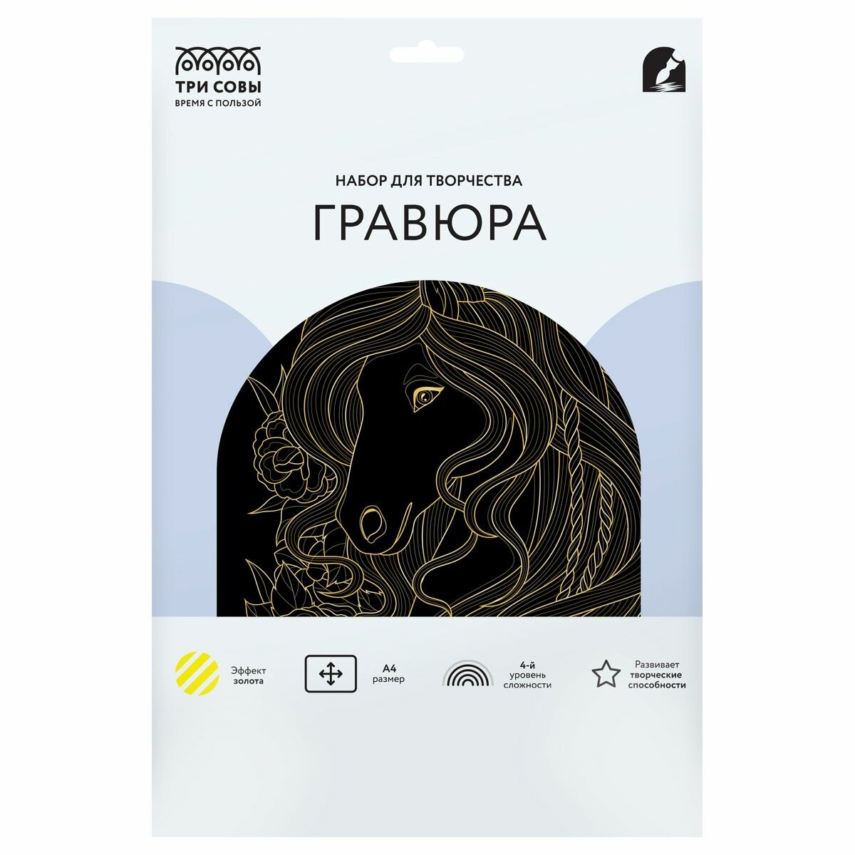 Гравюра ТРИ совы "Лошадь в цветах", с эффектом золота, А4 (GA4_48308) интересное: