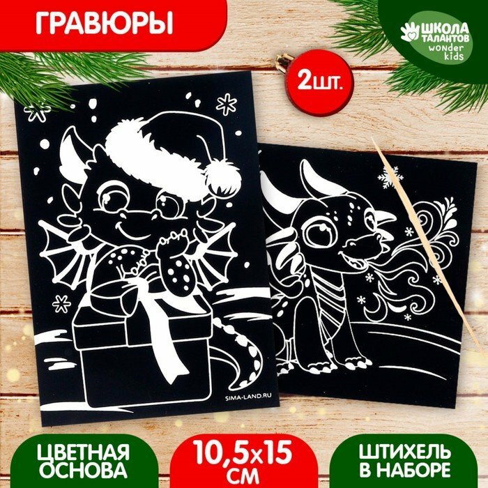 Гравюра «Дракончики-друзья», с цветным эффектом, 2 шт, 4 штуки интересное: