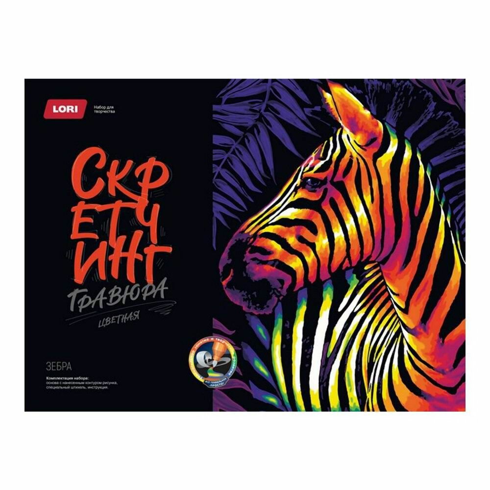 Купить Гравюра LORI Скретчинг, "Неоновые животные", Зебра, 30х40 см (Гр-776)