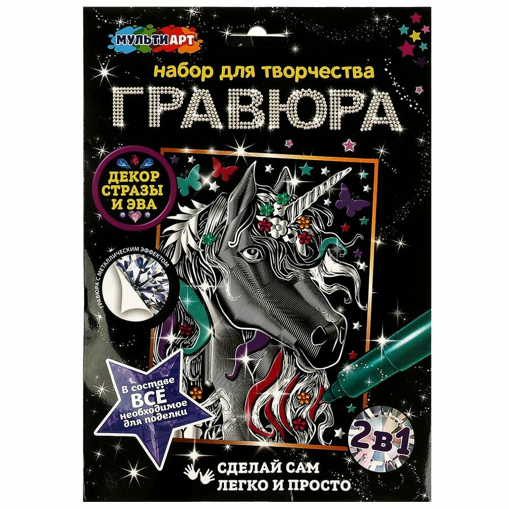 Купить Гравюра серебряная с декором 18х24 см. единорог MultiArt SCRATCH-SLV-MADEC