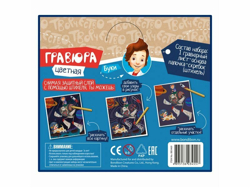 Купить Набор для творчества Bondibon / Гравюра цветная. Покоряя космос! / Ребенок 5 лет