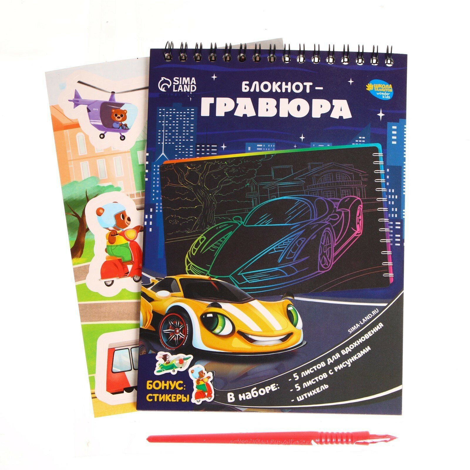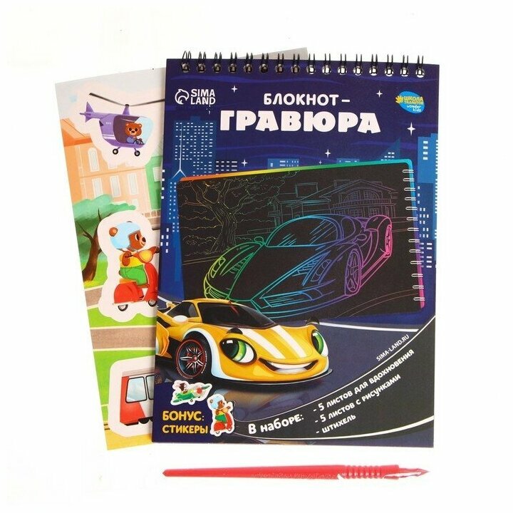 Блокнот-гравюра "Простоквашино", 10 листов, лист наклеек, штихель, формат А6