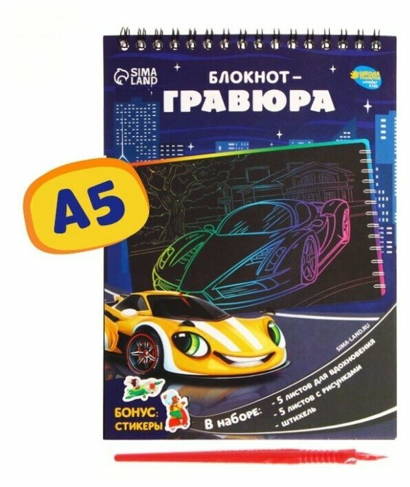 Блокнот-гравюра Школа талантов "Непобедимый робот", 10 л, A5, чёрный, неоновый, с штихелем интересное: