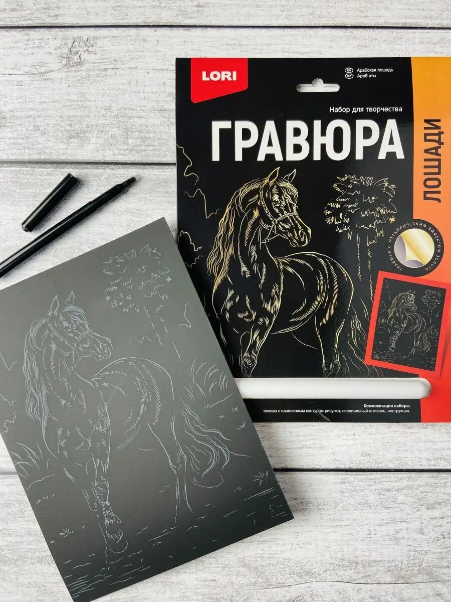 Купить Гравюра картина в рамке Лори Арабская Лошадка конь раскраска