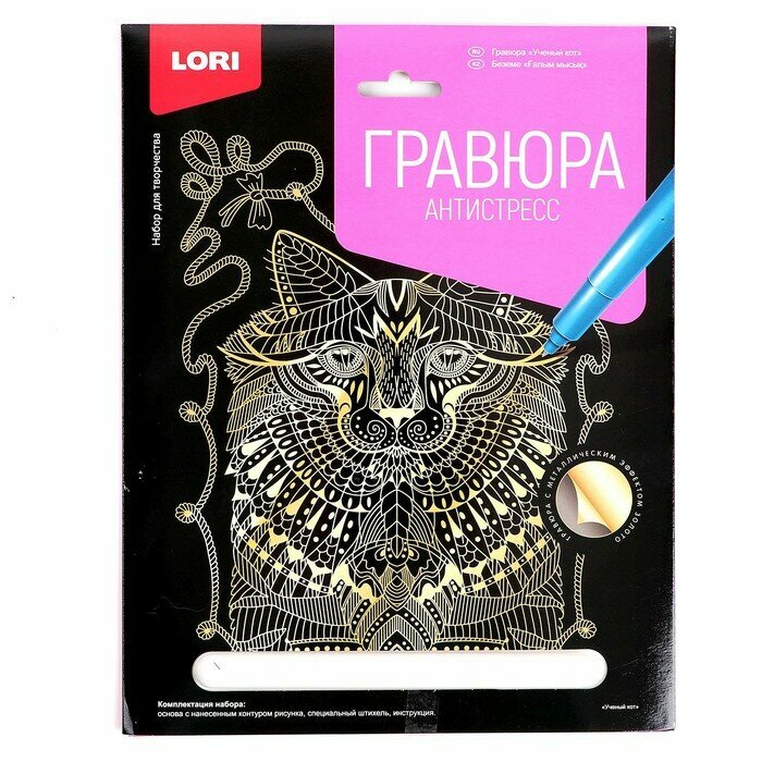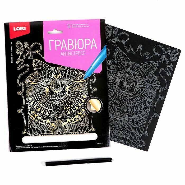 Купить Гравюра Антистресс Ученый кот большая с эфф. золота