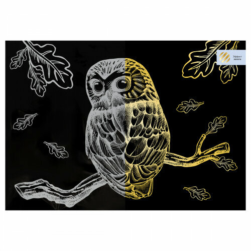 Купить Гравюра с эффектом золота Три Совы Сова, А4