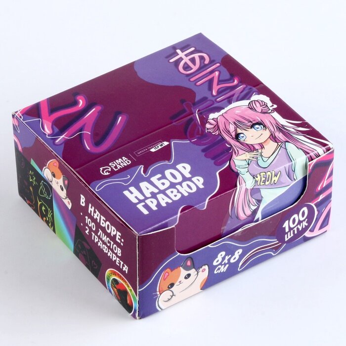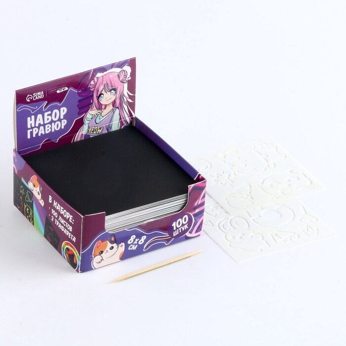 Гравюра детская «Мир аниме» с цветным эффектом, 100 шт, 8 х 8 см интересное: