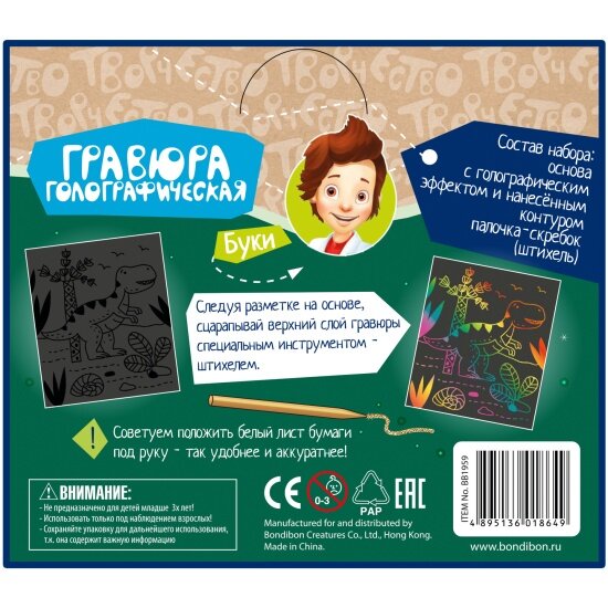 Набор для творчества Bondibon ВВ1959 Гравюра голографическая интересное: