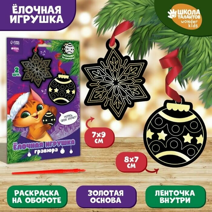 Купить Гравюра-ёлочная игрушка "Кот с игрушкой", с ленточкой