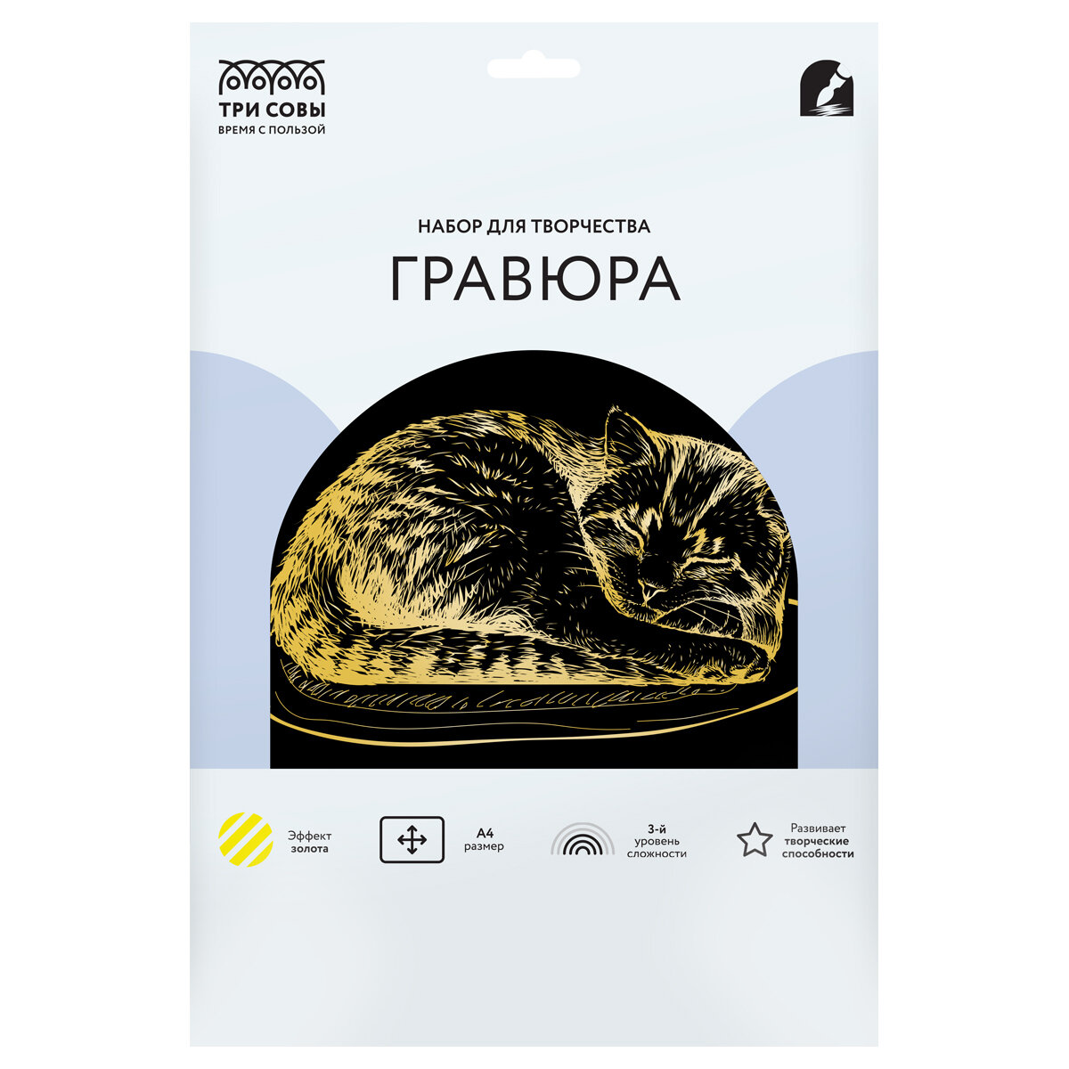 Гравюра с эффектом золота ТРИ совы "Кошка клубочком", А4 (арт. 345913) интересное: