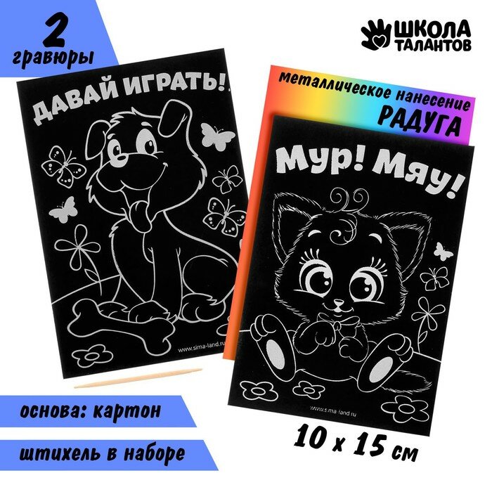 Гравюра детская «Давай играть», полноцветное основание, набор 2 шт, 10 х 15 см интересное: