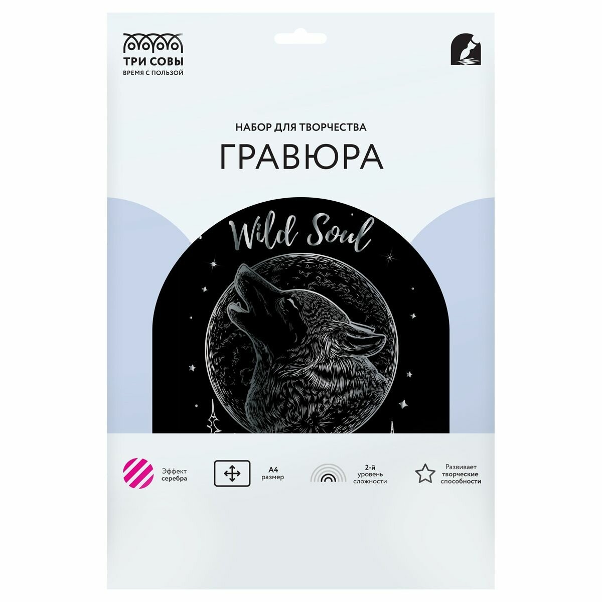 Гравюра ТРИ совы "Волк", с эффектом серебра, А4 (GA4_48281) интересное: