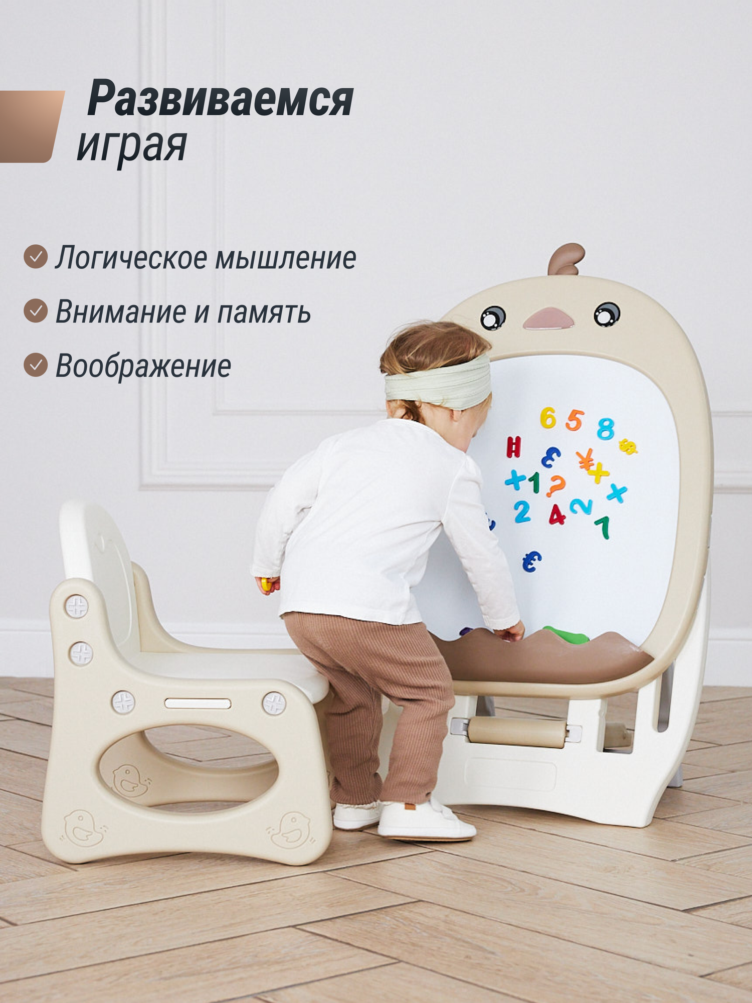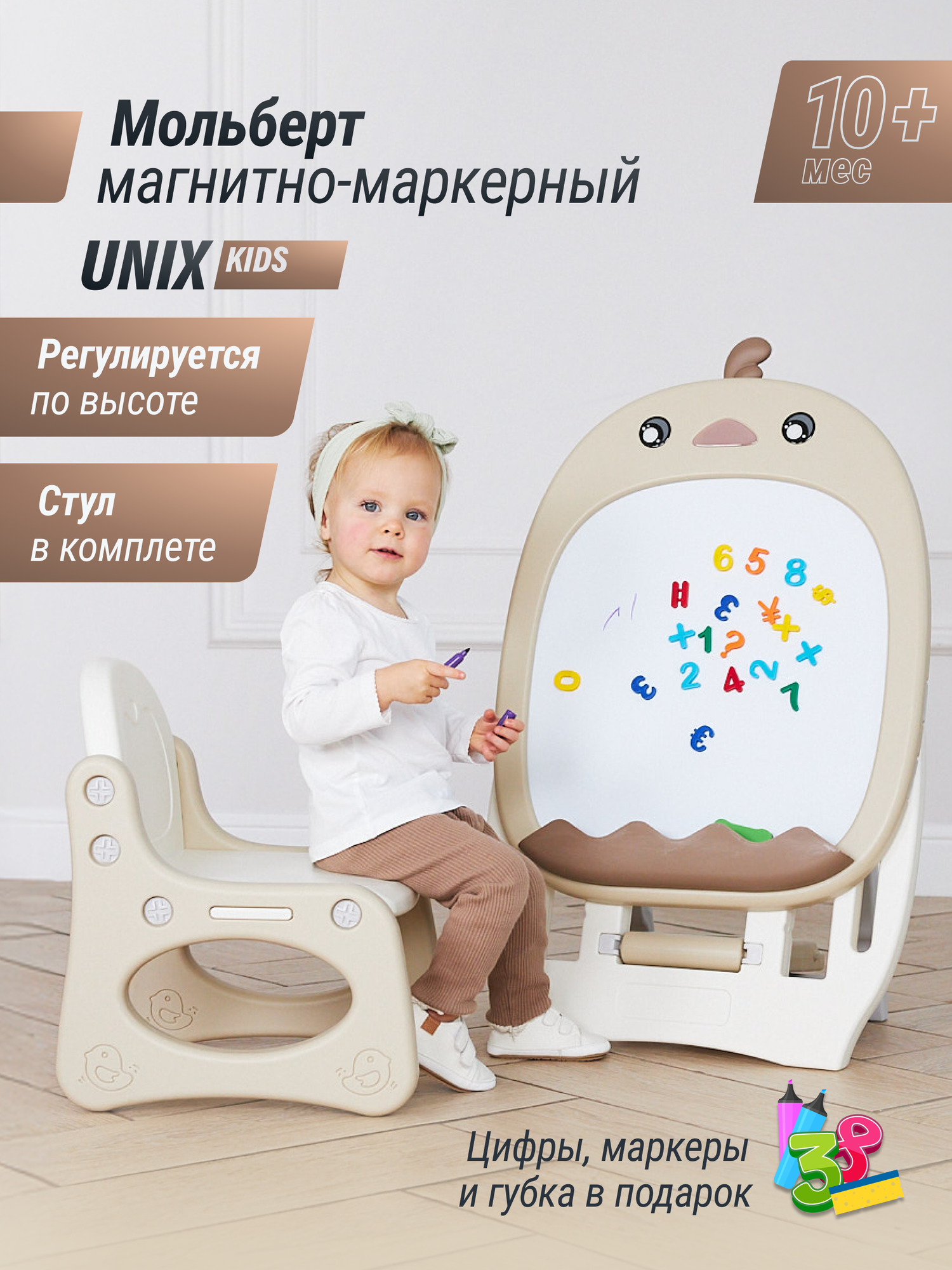 Купить Развивающий детский мольберт Unix Kids со стульчиком с цифрами-магнитами, маркерами и губкой