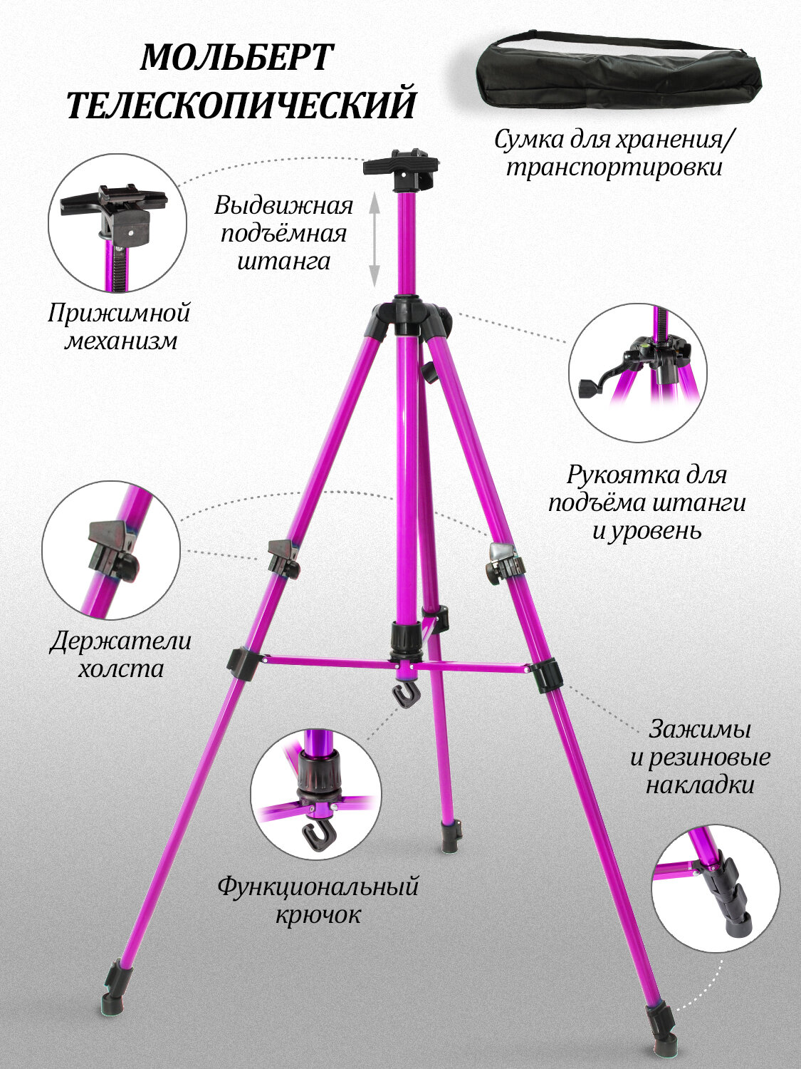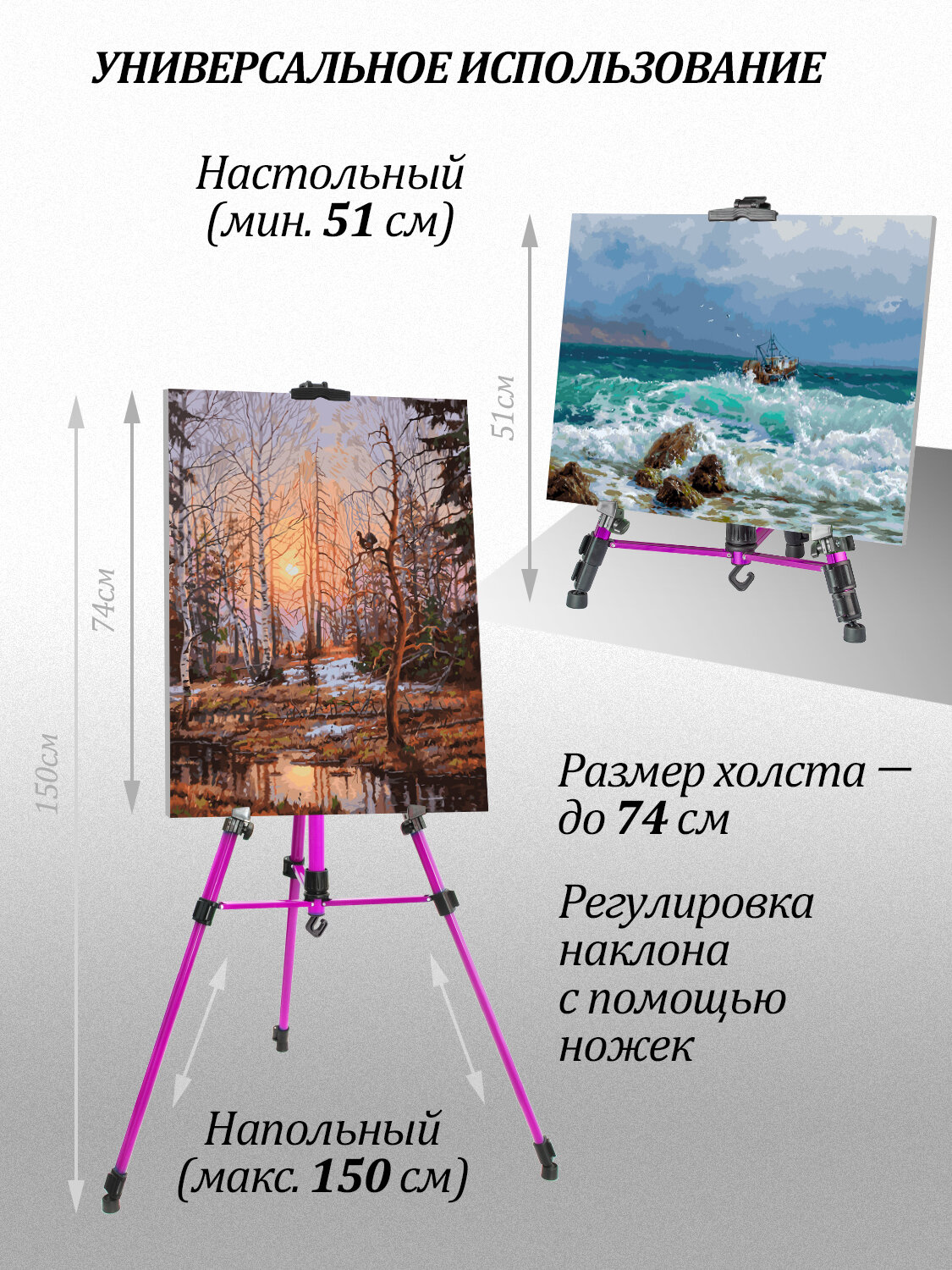 Купить 65-BS Мольберт напольный/настольный телескопический тренога метал. фиолетовый
