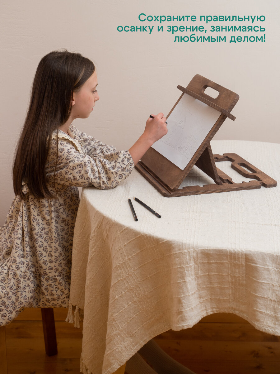 СохранитьМольберт для рисования А4 от "Растульчик", настольный, с регулировкой наклона, венге интересное: