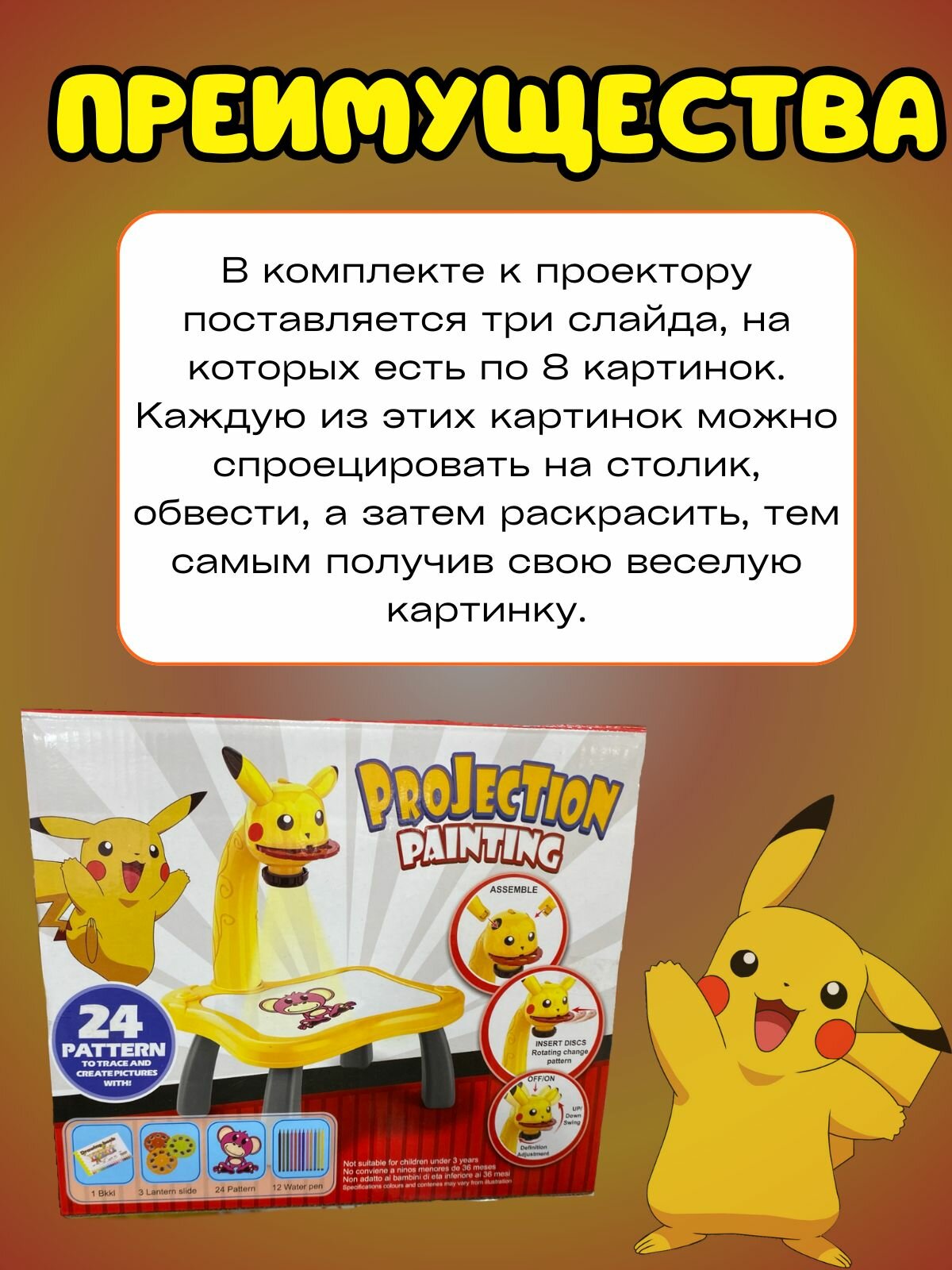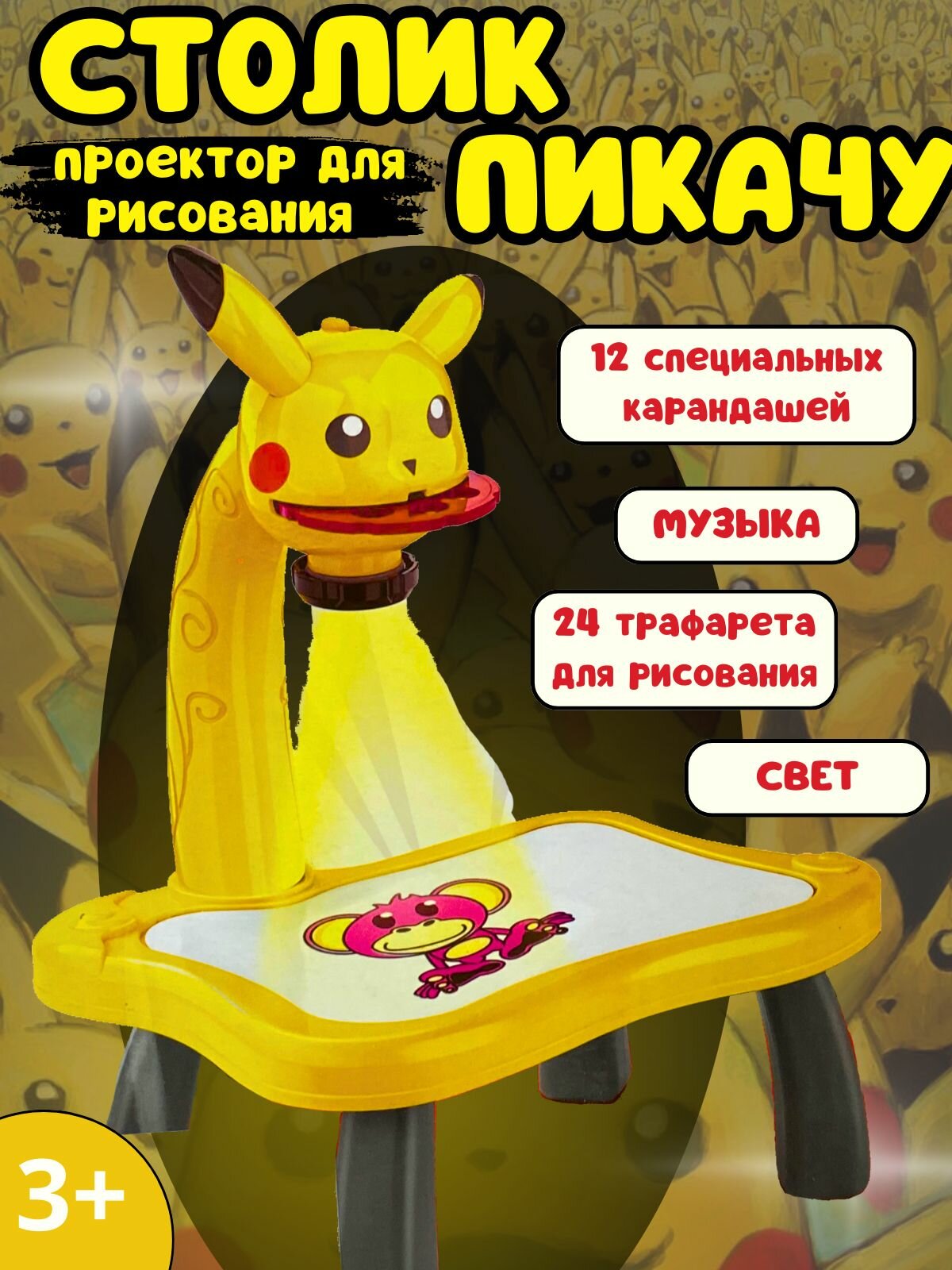 Столик проектор для рисования Пикачу. Набор для детского творчества. интересное: