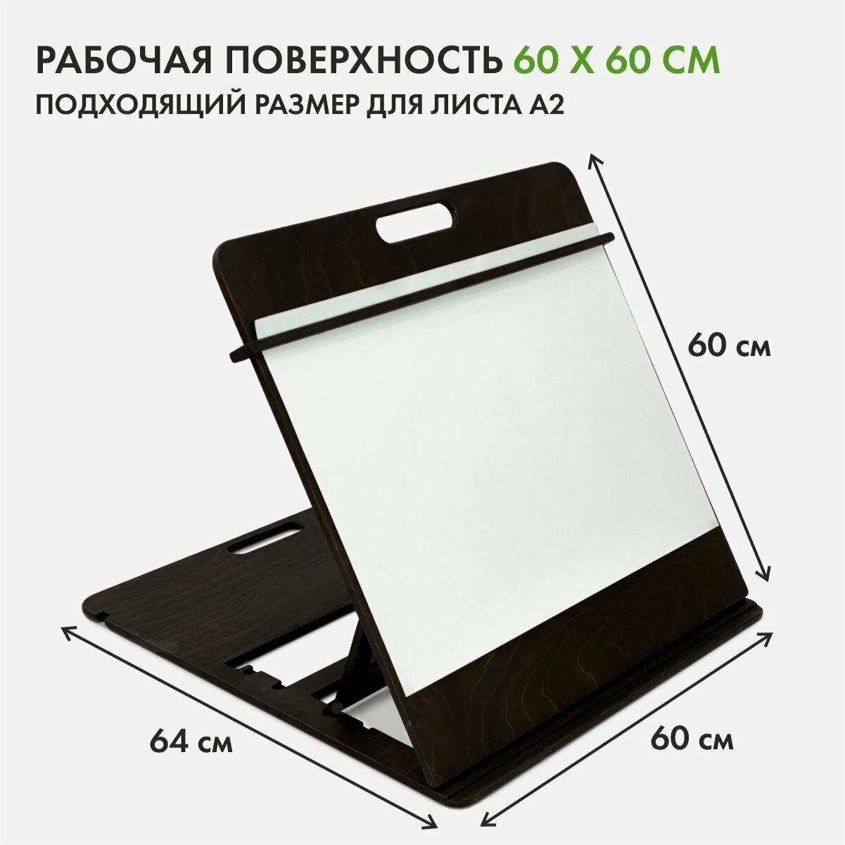 Купить Мольберт для рисования настольный А2, черный венге, с защитной накладкой