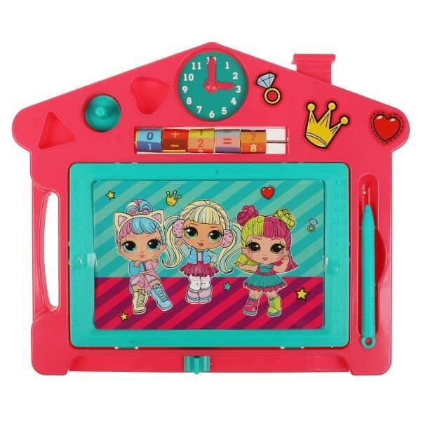 Купить Детская доска для рисования магнитная Принцессы Лол Играем вместе / счеты + часы + 3 штампа