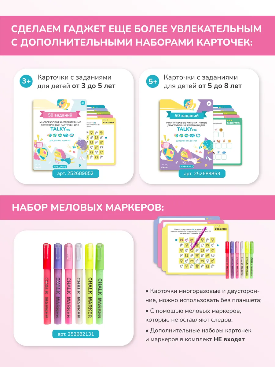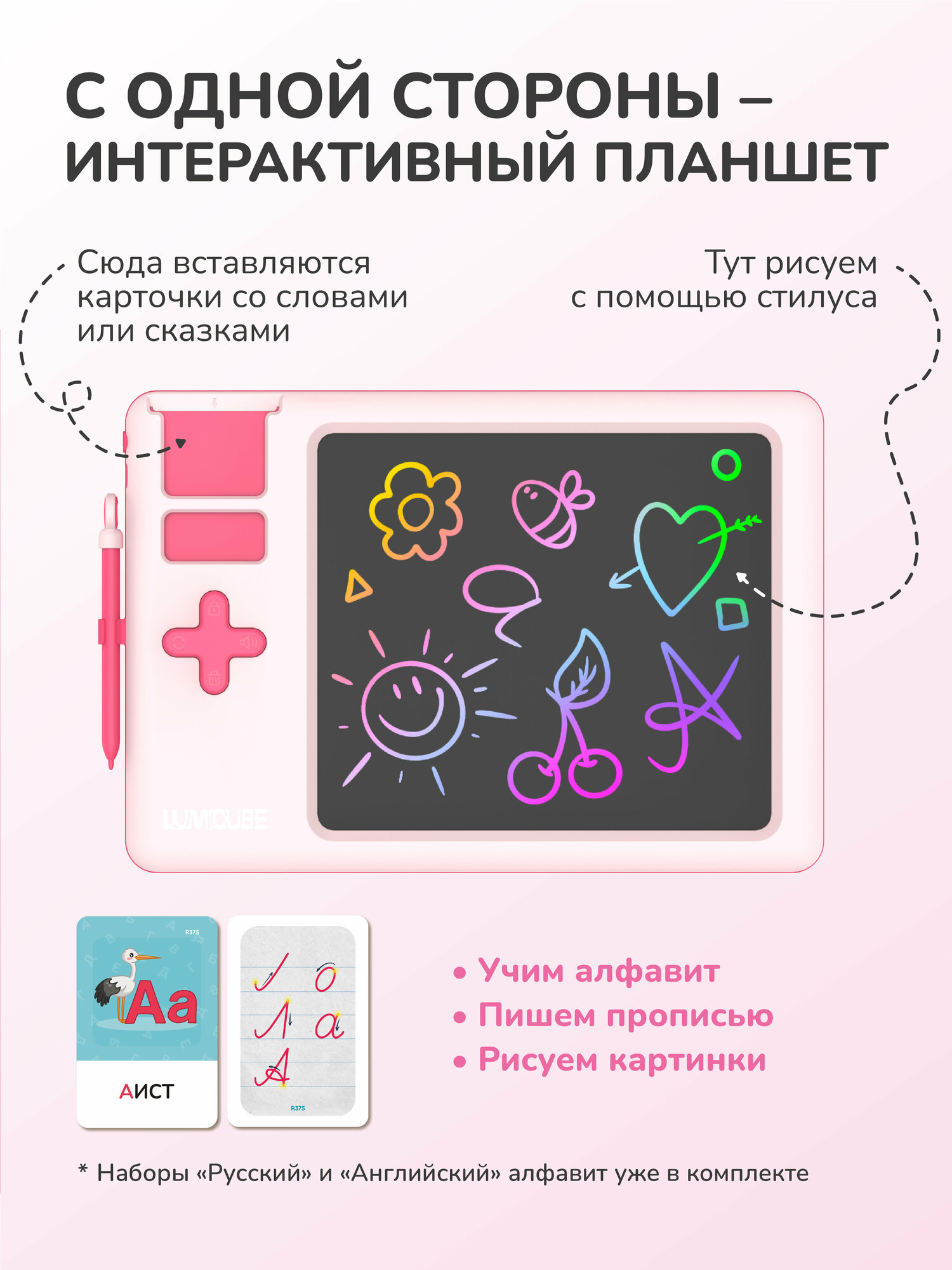 Развивающий планшет TALKY PRO LUMICUBE, для рисования, двусторонний, розовый интересное: