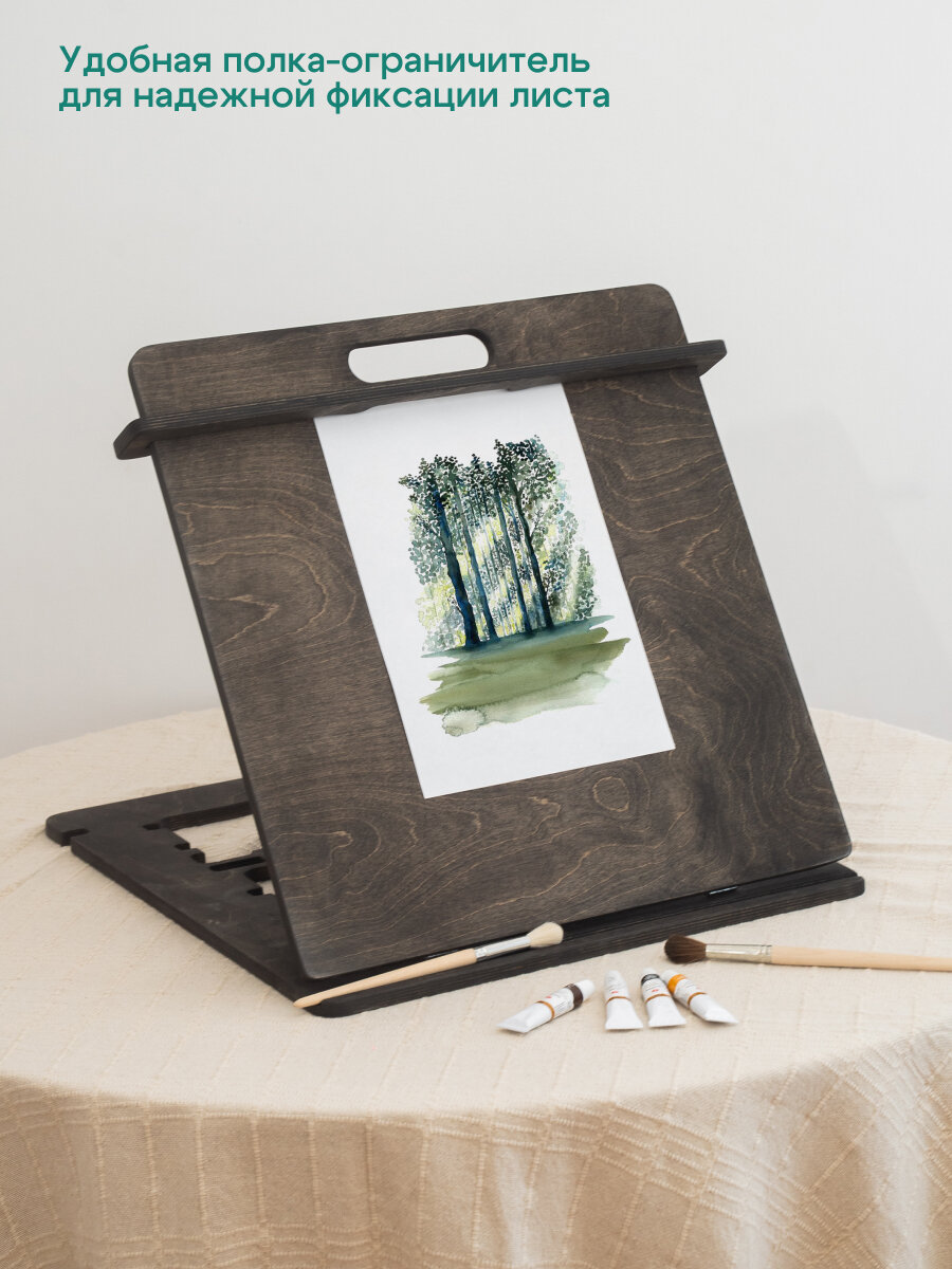 Мольберт для рисования А3 от "Растульчик", настольный, с регулировкой наклона, темный дуб интересное: