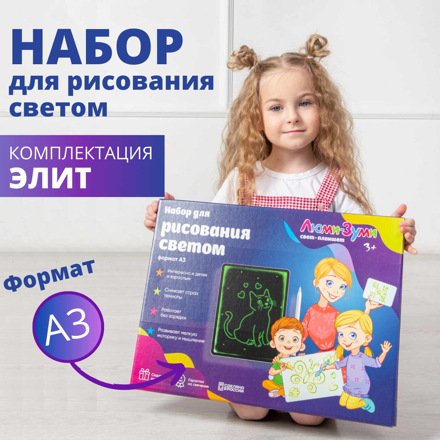 Планшет для рисования светом в темноте Люми Зуми Элит А3 интересное: