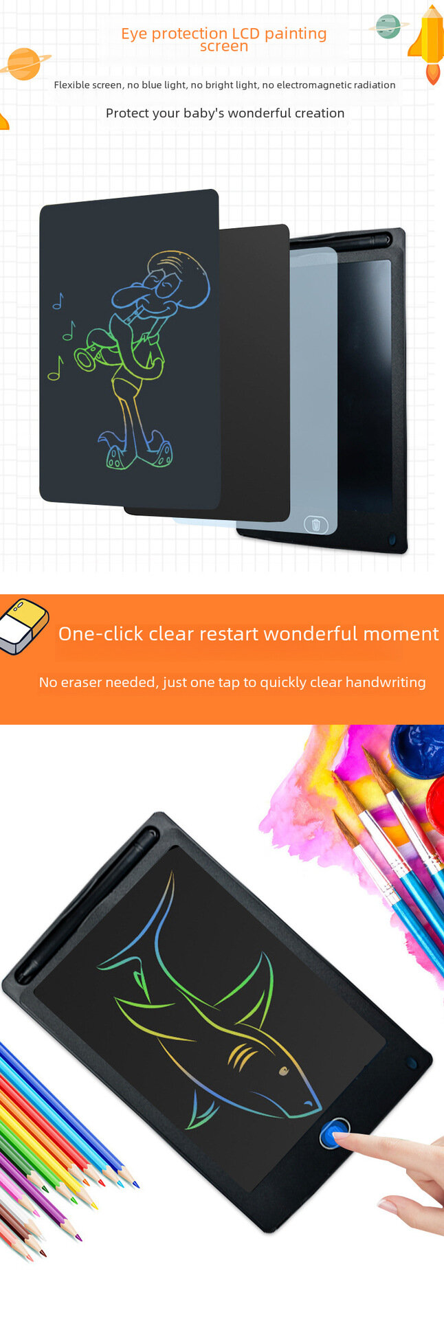 Доска для рисования, ЖК-экран, 8.5 дюймов, белая
