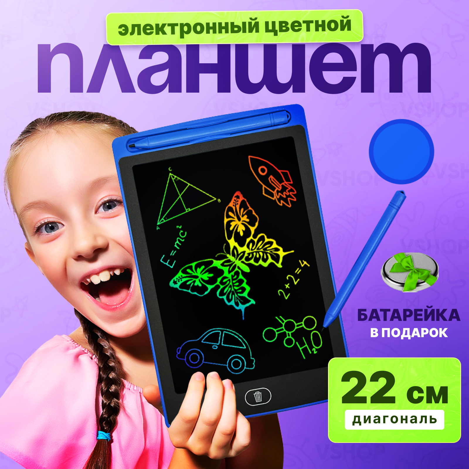 Графический планшет 8,5 дюймов для рисования детский цветной микс