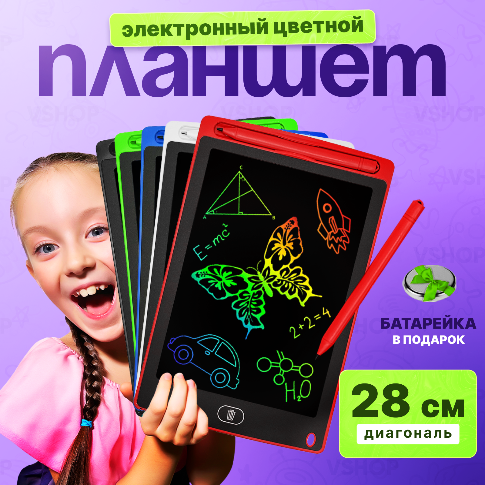 Графический планшет 8,5 дюймов для рисования детский цветной микс