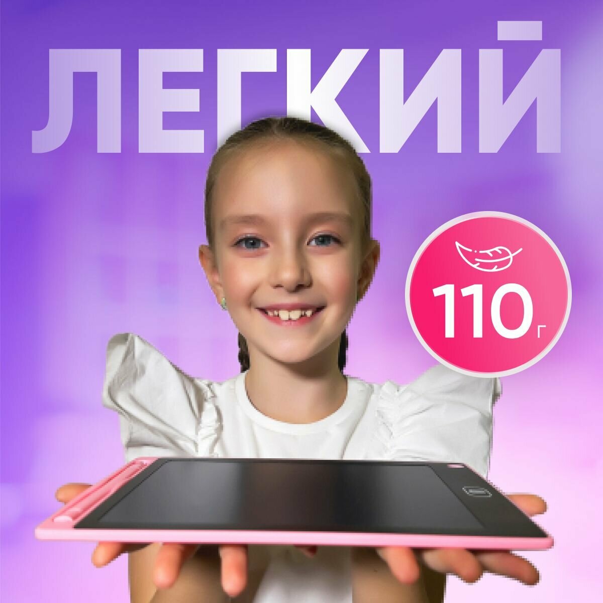 Графический планшет 8,5 для рисования детский розовый цветной