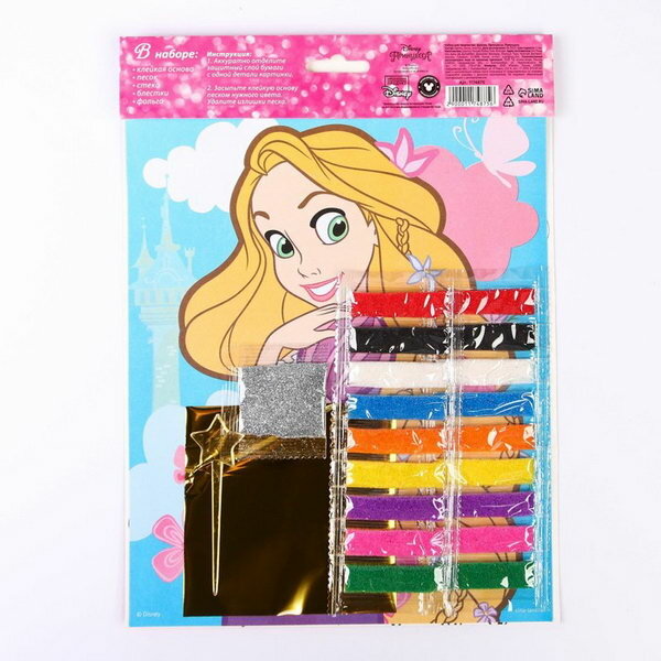 Купить Фреска песком с блёстками "Принцессы", 9 цветов, материал для аппликации: блёстки