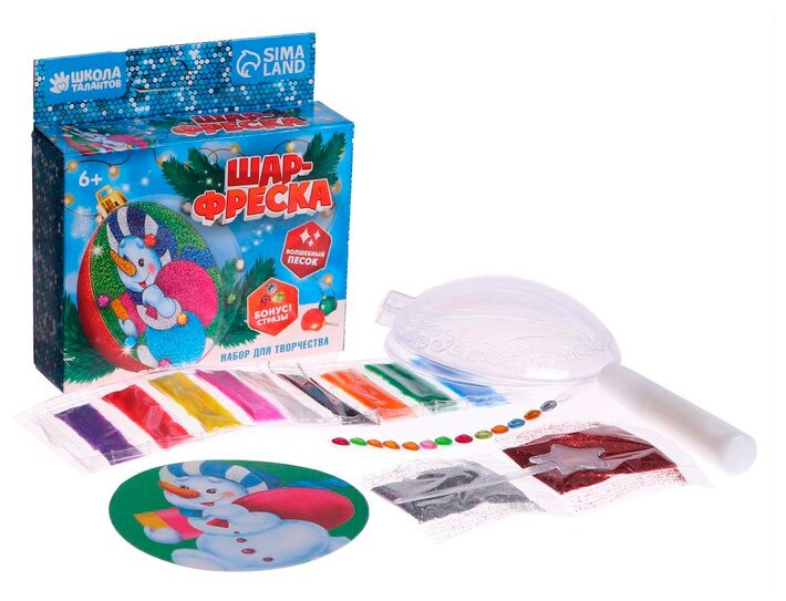 Купить Ёлочный шар-фреска "Новый год! Снеговик с подарками", набор для творчества