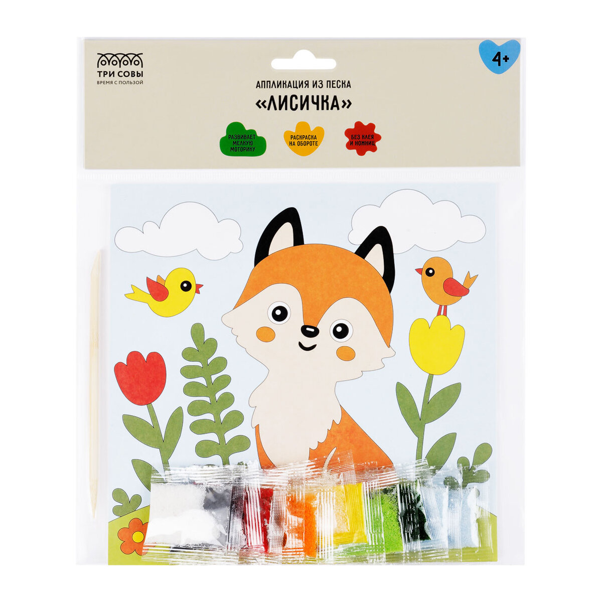 Купить Аппликация из песка ТРИ совы "Лисичка", с раскраской, пакет с европодвесом, 2 штуки
