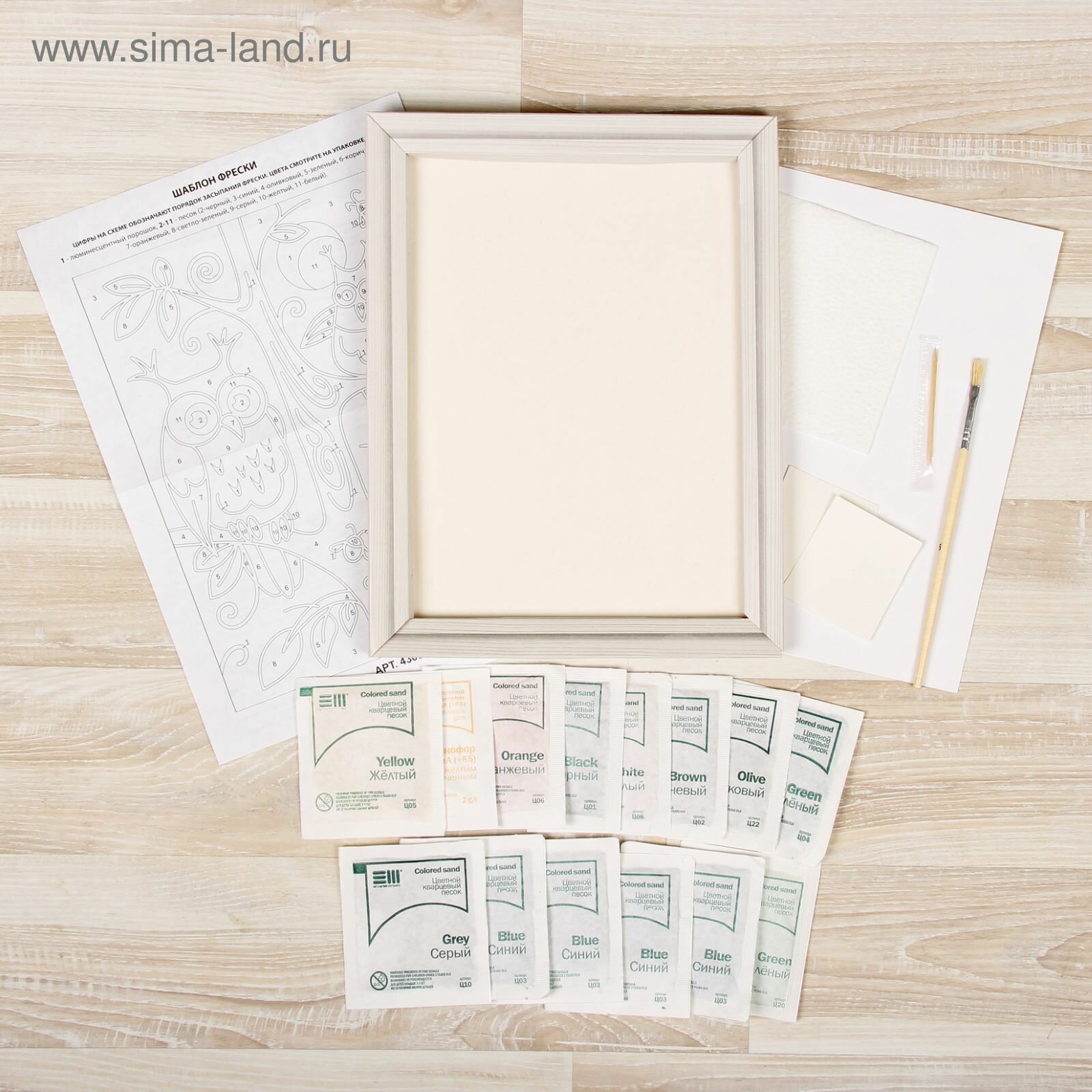 Фреска песком "Морской дуэт" + 9 цветов песка по 4 гр, блёстки, стека 1шт.