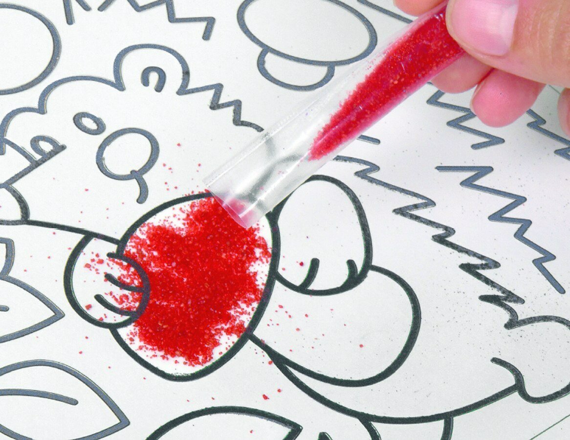 Набор для детского творчества "Песочная фреска Енот", рисование цветным песком, картина по трафарету для детей, 8 цветов интересное:
