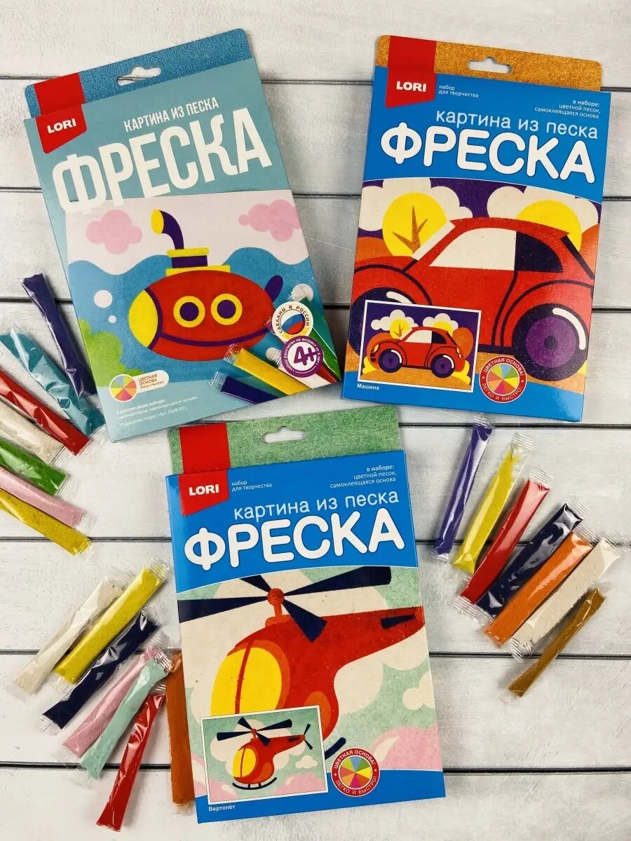 Купить Фреска из песка для росписи набор для творчества Транспорт