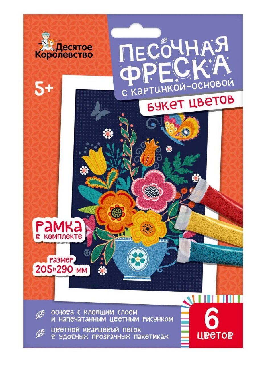 Песочная фреска Десятое королевство Букет цветов рамка, 6 цветов, 205х290 мм 04335ДК интересное: