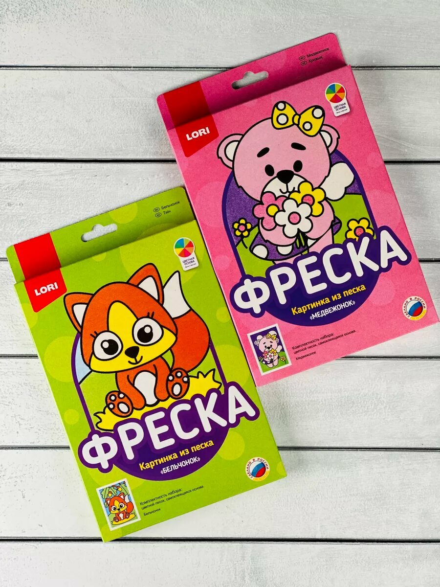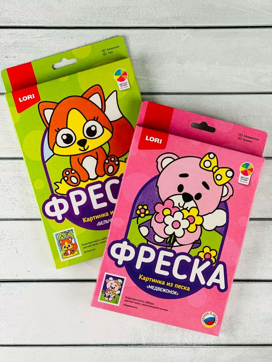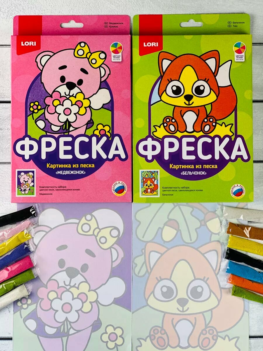 Аппликация из песка Цветной песок 2шт Белка Мишка Лори интересное: