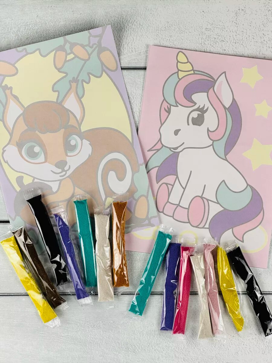Купить Картина из песка 2шт Белочка Единорожка Единорог Лори
