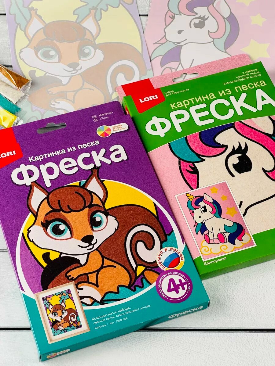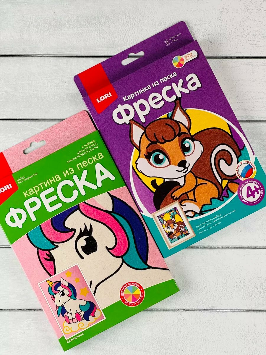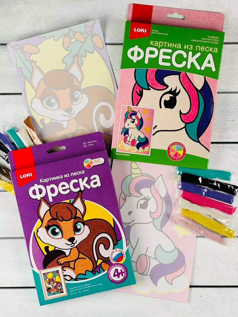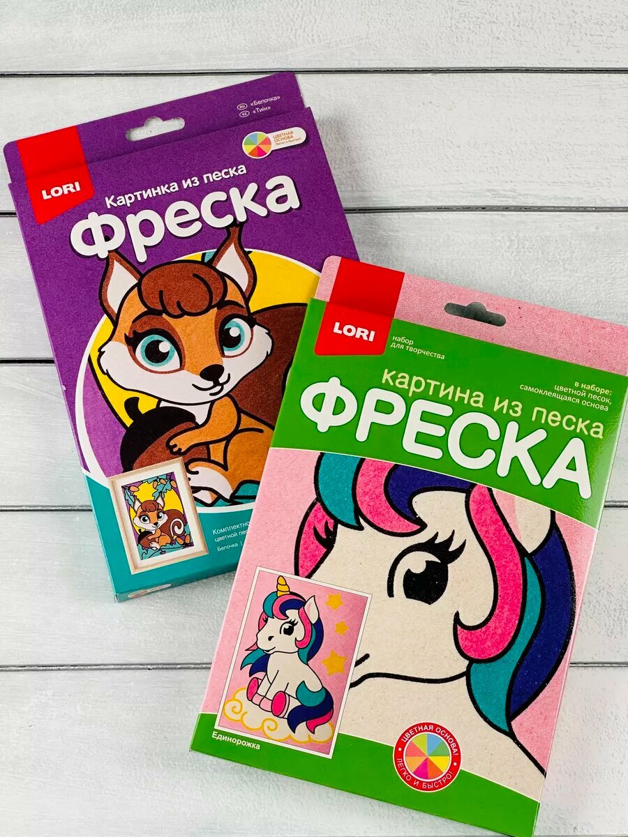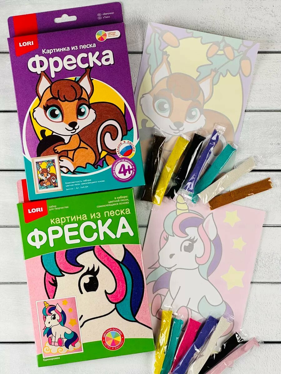 Картина из песка 2шт Белочка Единорожка Единорог Лори интересное: