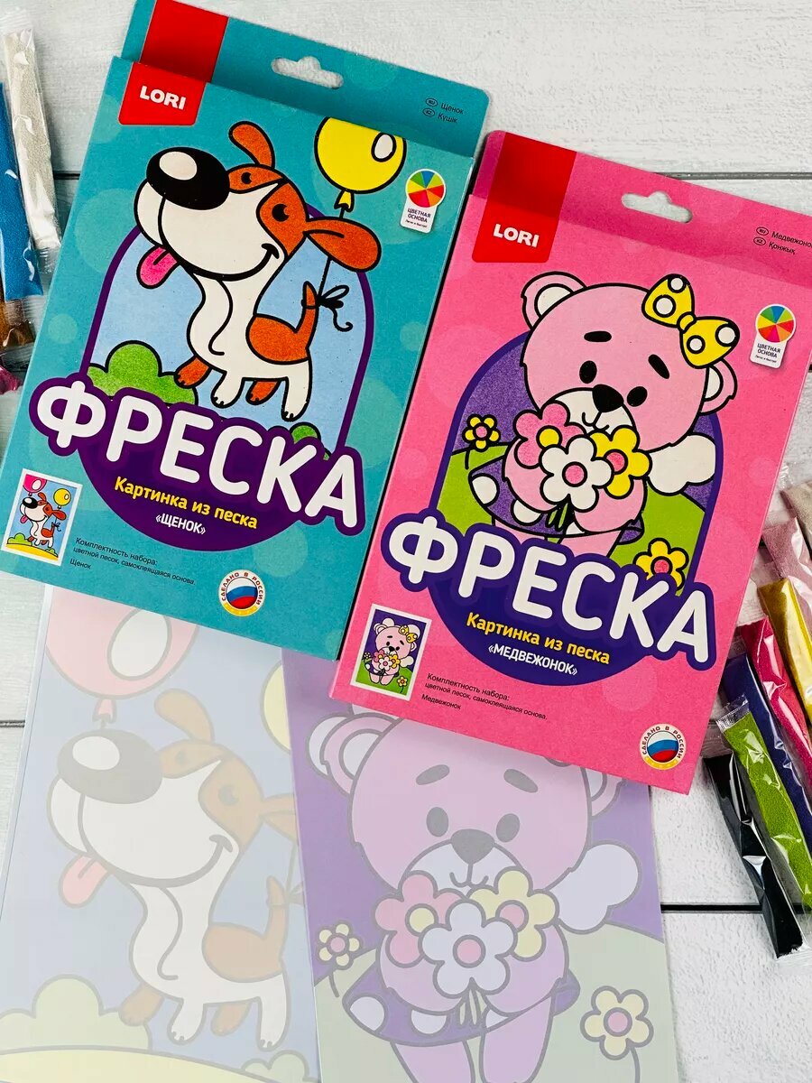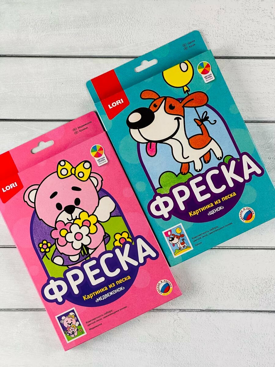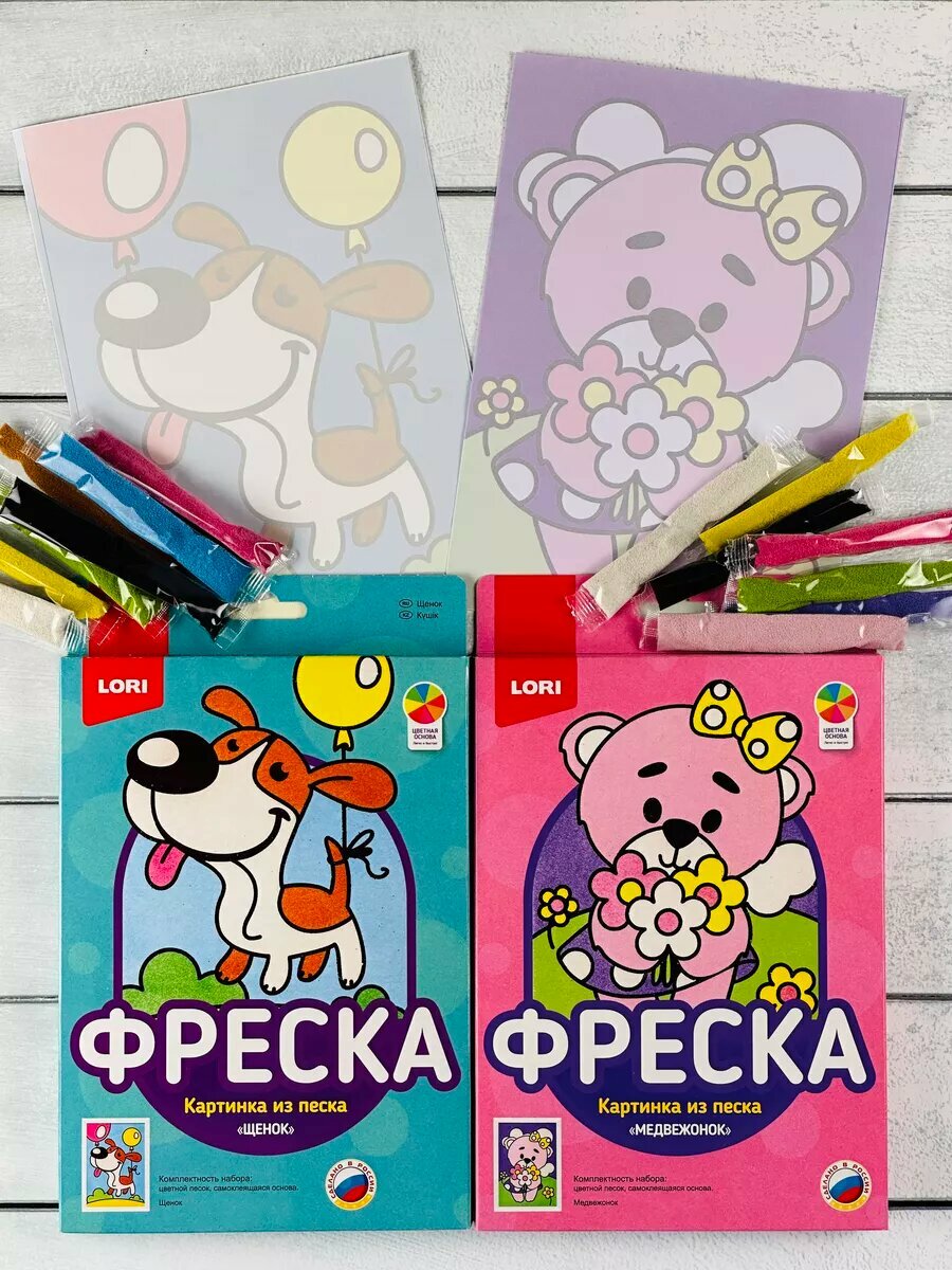 Картина Цветной песок Мишка Медвежонок Щенок Собака Лори интересное: