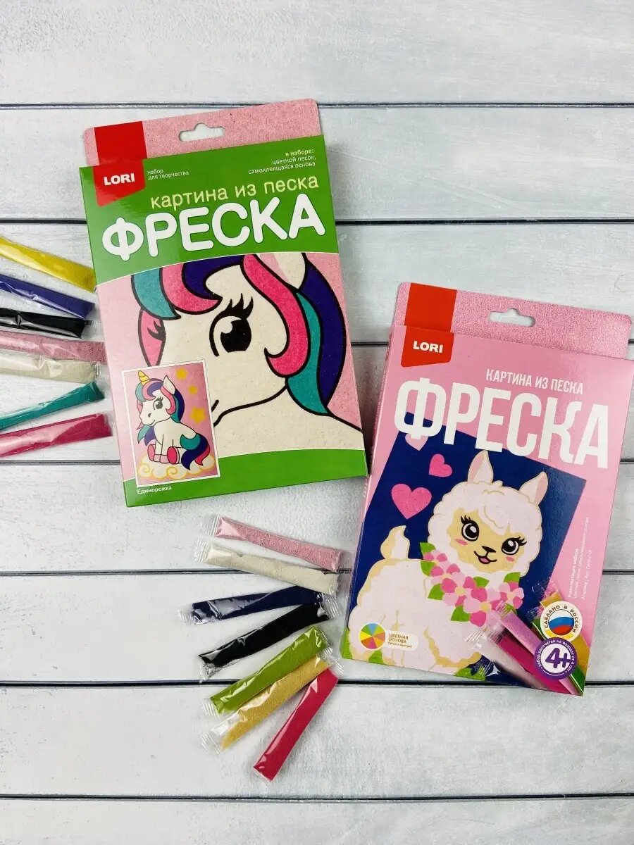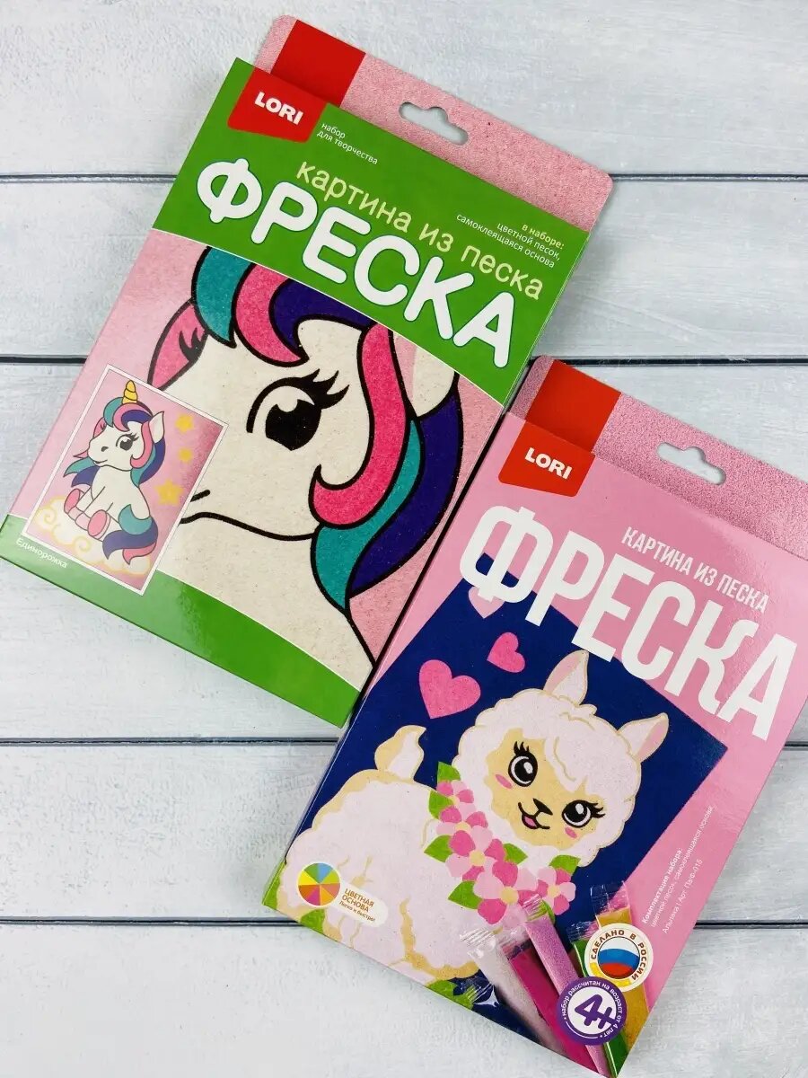 Картина из песка 2 шт Альпака Единорог Единорожка Лама Лори интересное: