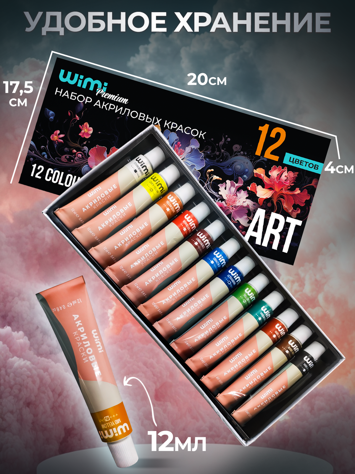 Акриловые краски художественные для рисования WiMi набор 12 цветов по 75 мл