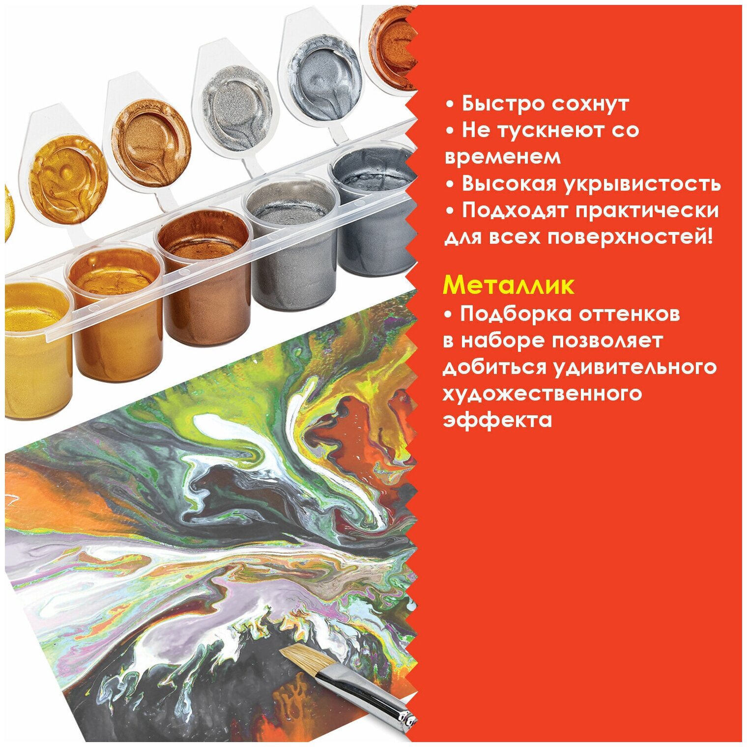 Купить Краски Остров Сокровищ акриловые металлик для рисования и хобби 6 цветов по 25 мл, 191691