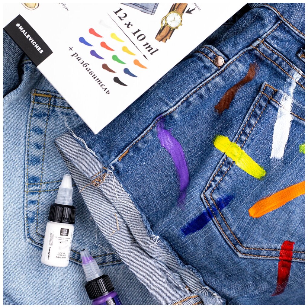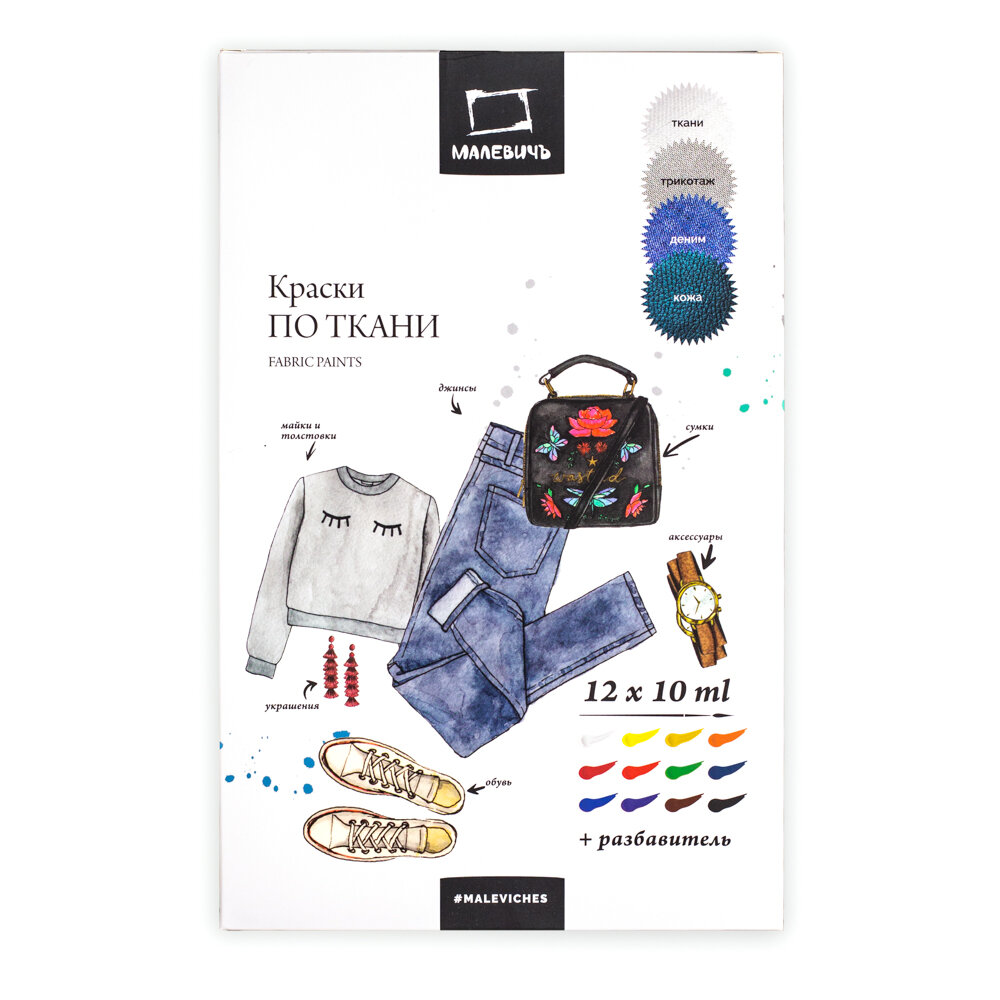 Купить Акриловые краски по ткани Малевичъ 12 цветов по 10 мл + разбавитель