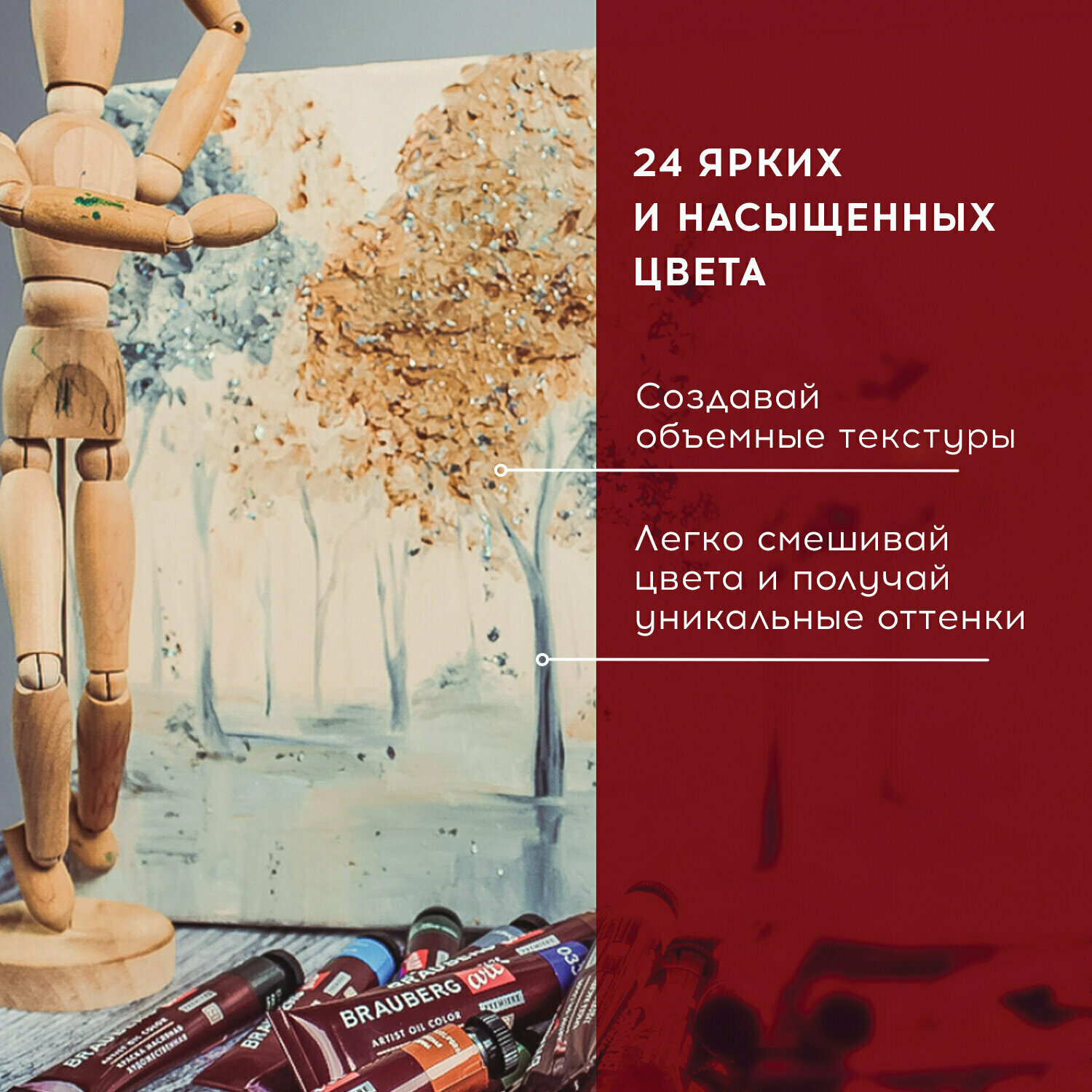 Краски масляные для рисования художественные водоразбавимые, 24 цвета по 18 мл в тубах, Brauberg Art 192291