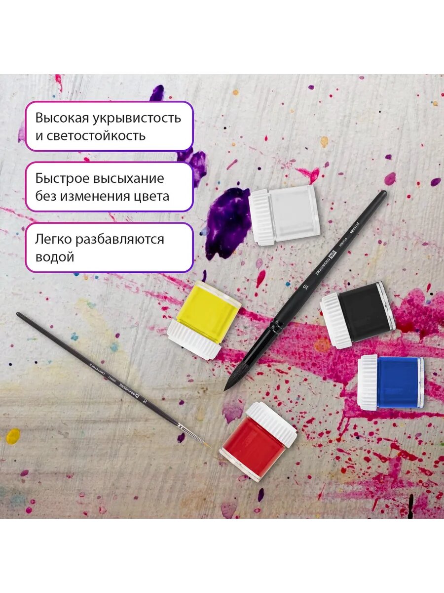 Акварель художественная / краски акварельные для рисования в кюветах Набор 18 цветов по 2,5 г, Brauberg Art Debut, 191777