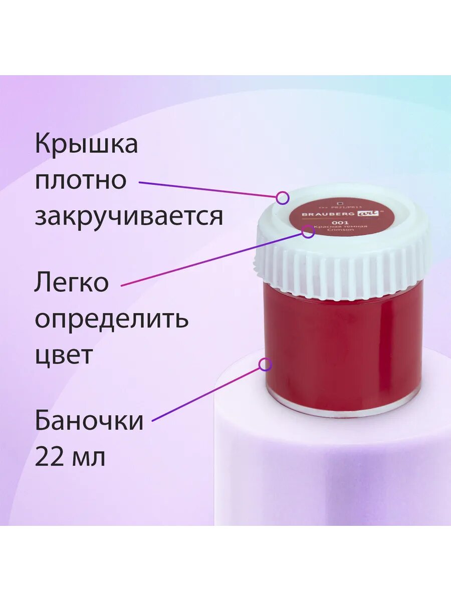 Краски акриловые художественные 24 шт, 22 цвета в банках по 22 мл, Brauberg Hobby, 192412